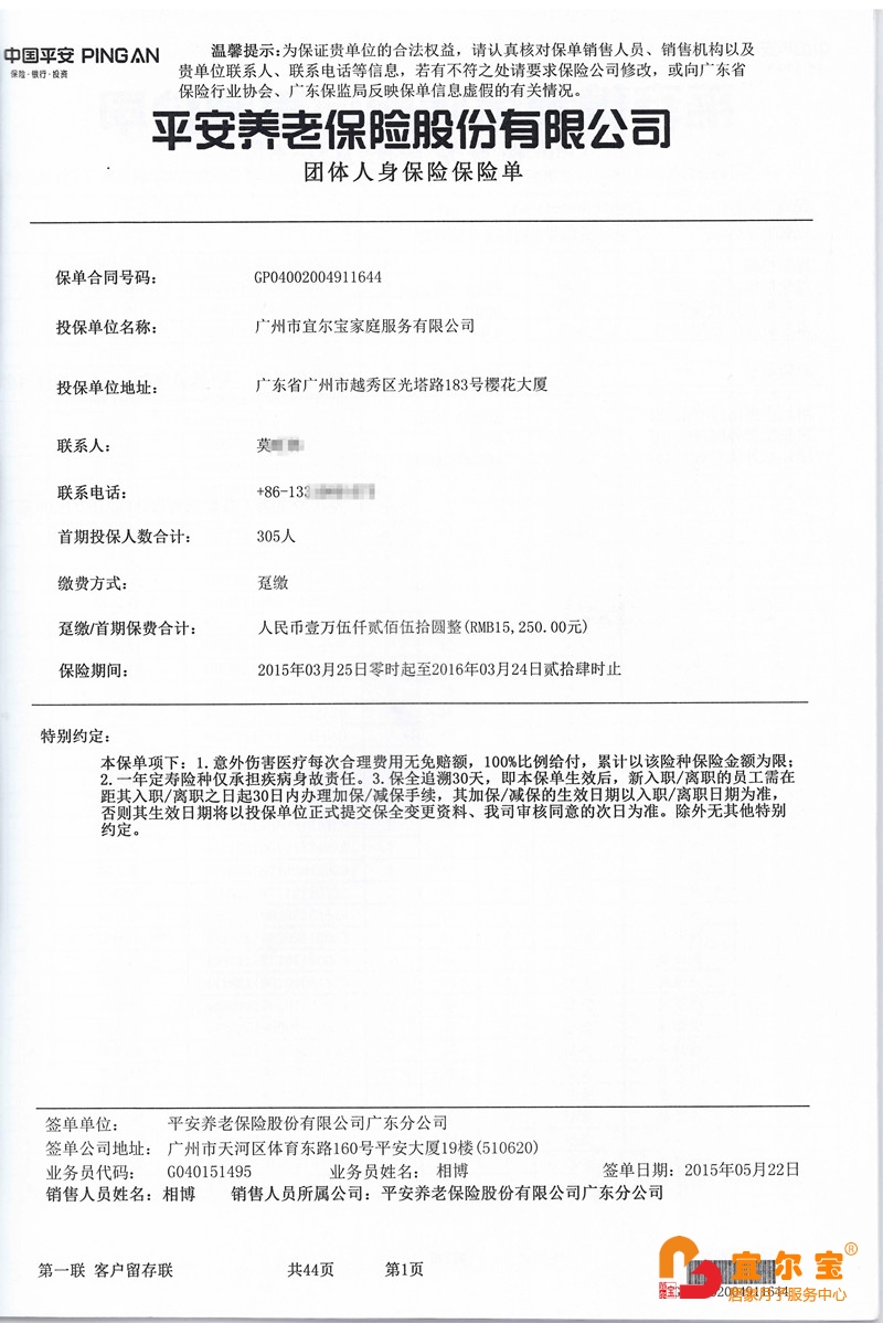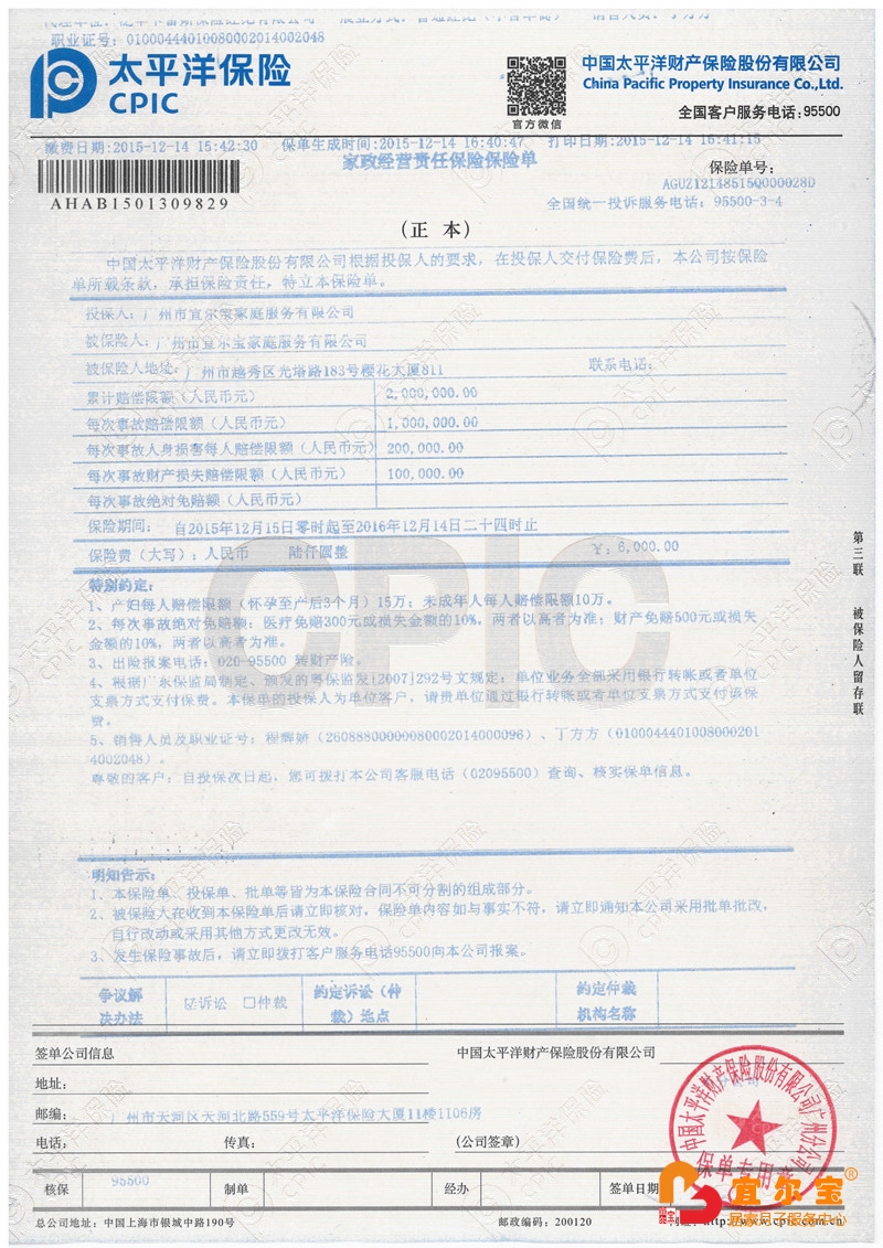 宜爾寶月嫂家政經(jīng)營責(zé)任保險保單