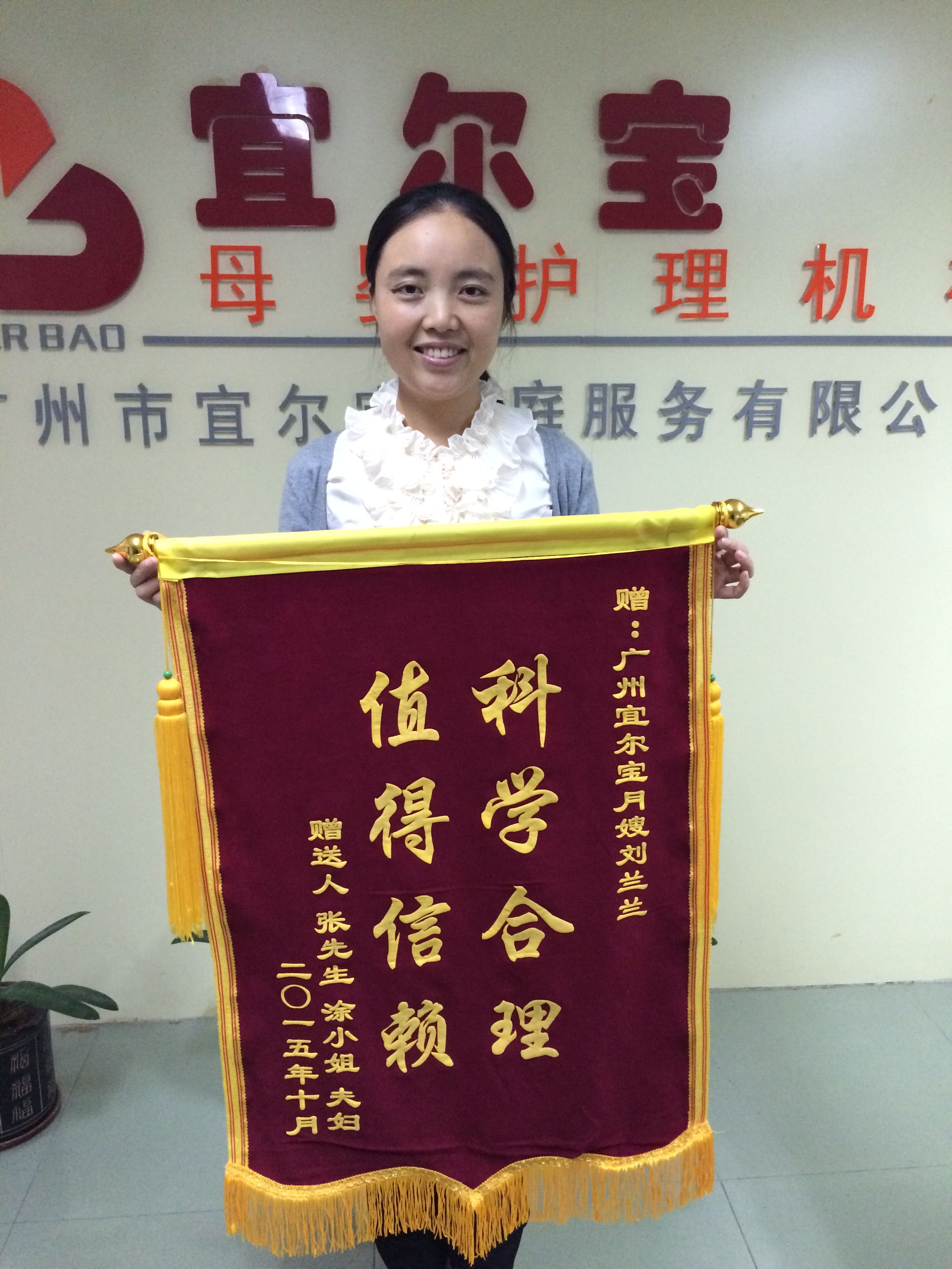 很感謝蘭姐月子期間的照顧,蘭姐很有耐心照顧我和寶寶,做事方面也很有條理,和我們大家相處的都很好,我是通過朋友介紹貴公司的,以后有親戚朋友需要,還是會推薦的,服務(wù)各方面都很好很滿意!